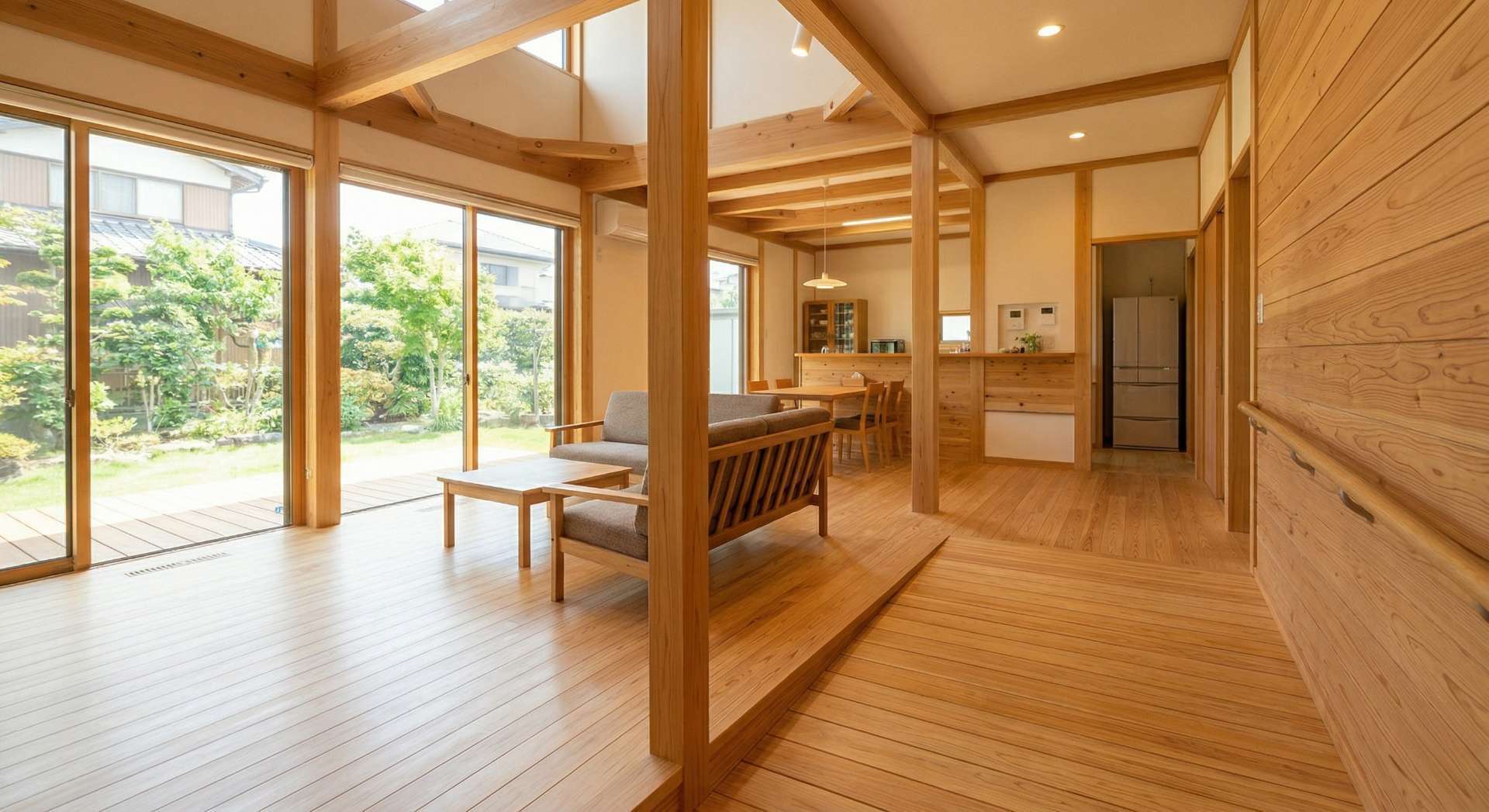 床材に無垢の木を使うことも、温度のバリアフリーに寄与します。合板のフローリングは冬場にヒヤッとしますが、空気層を多く含む杉や檜(ひのき)の床材は、素足で触れても温もりを感じられます。こうした「木の温かみ」は、冷え性の解消やリラックス効果も期待できるため、健康住宅を考える上では欠かせない要素です。