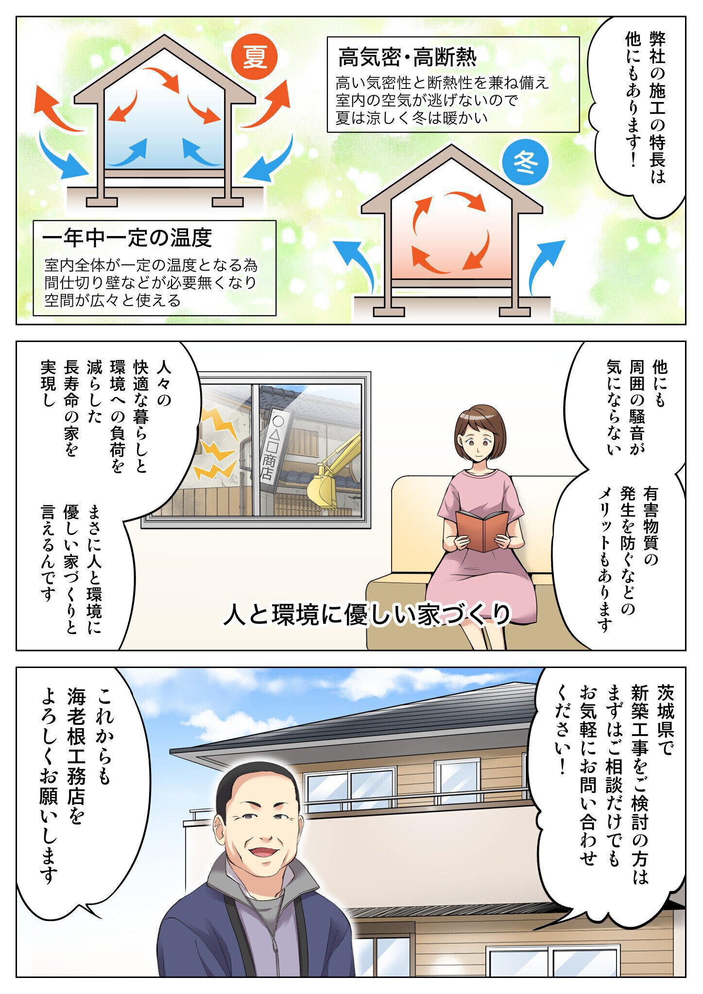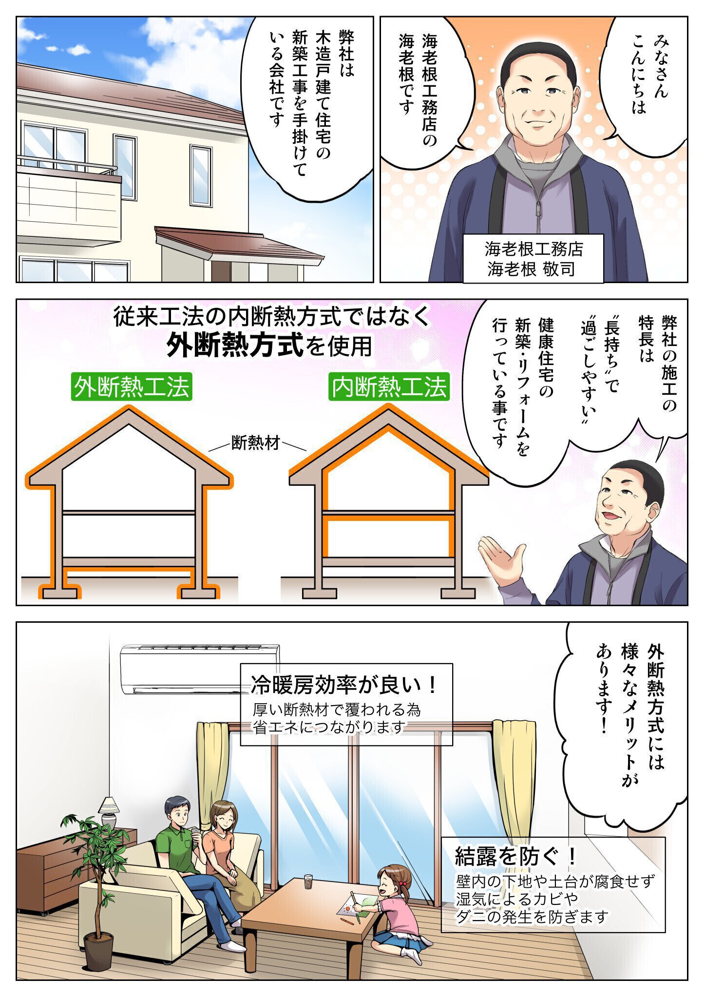 海老根工務店の特長を漫画で紹介
